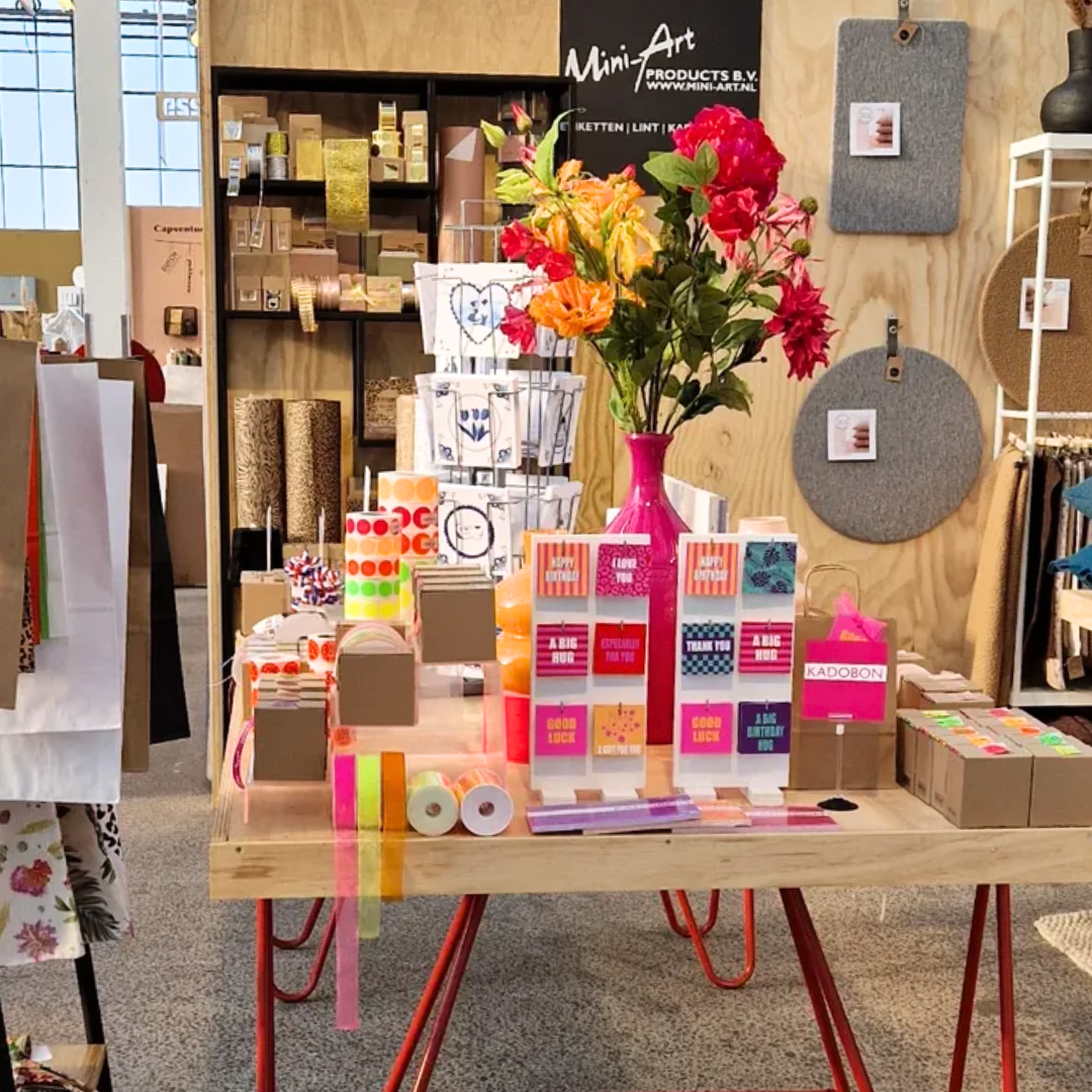 Tijdens Trendz/showUP ontdek je direct welke leveranciers je hierbij helpen. Bezoek bijvoorbeeld de stands van CollectivWarehouse, Kassaplan en Mini-Art Products voor o.a. andere cadeauverpakkingen, labels, kaarten en linten.